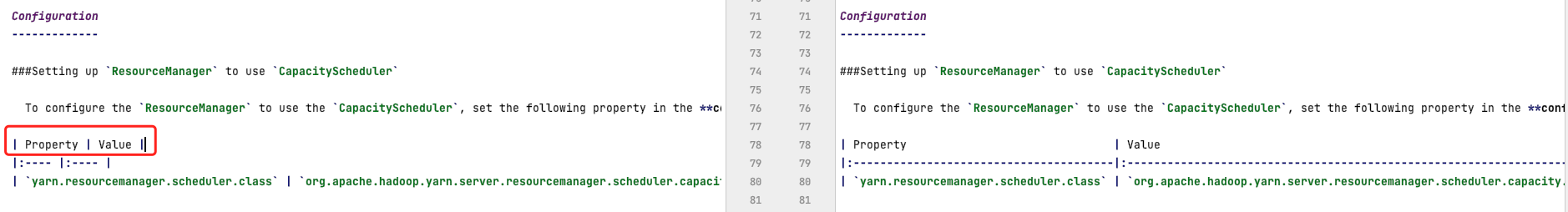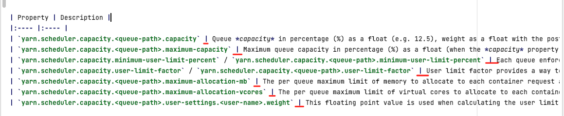 This pr mainly modifies the format of the table in markdown, so as to better modify the content of the table in md later. - Take CapacityScheduler.md as an example  The main problem is that the tables are not aligned and we need to find the table boundaries. This is sometimes a bit difficult, if the description information is more. We need to find the boundary, when we want to modify some content in the table.  If we can align the table, it will be easier to find a row to modify.  After modification, we found that the same content is more tidy. -- This is an automated message from the Apache Git Service. To respond to the message, please log on to GitHub and use the URL above to go to the specific comment. To unsubscribe, e-mail: [email protected] For queries about this service, please contact Infrastructure at: [email protected] --------------------------------------------------------------------- To unsubscribe, e-mail: [email protected] For additional commands, e-mail: [email protected]