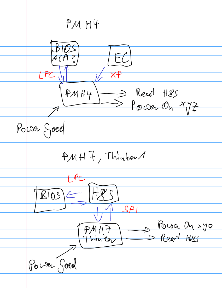 On newer board the PMH interfaces changed (>= x60, t60, …). They merge the LPC interface and the XP interface into an protocol over SPI. And the new PMH is used as GPIO expander as well.