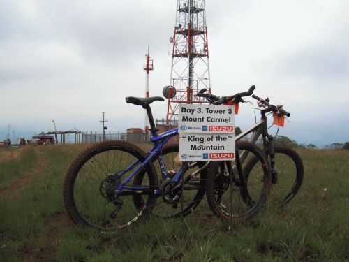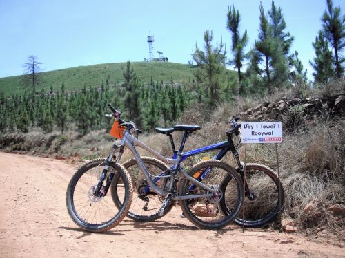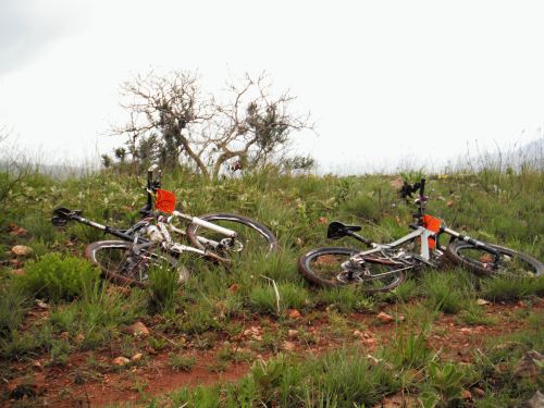 On Wed, 19 Oct 2011 10:10:41 +0200 Carine wrote When Team Clueless entered the 3 Towers months ago, we dreamed of back to back training rides on weekend, conquering the magalies mountains and getting lots of playtime in the saddle. But life interfered, so when we left Joburg late on Thursday evening, I haven't been on the bike for 3 weeks, and Adri hasn't been training in sympathy with my cold and study deadlines and fighting her own flu. At least our bikes were serviced and Linden Cycles looked after us with a 'just-in-case' box of spares and a racing (podium contender) bike mechanic who could take care of any mechanicals. Day 1 80 km total vertical ascent: just over 1700 m total time: just over 7 hours (riding time was just over 6 hours, indicating a lot of time spent at the water tables) It was warm. The day started with a long climb, and then we climbed some more. The highlight was a rivercrossing at Ryan falls. Adri in the river just above the falls. [1] The extreme deadly dangerous portage on the other side of the river. [2] It was a short scramble / portage to the waterpoint where we lubed the bikes, ate lots of bar-one potatoes and filled up with huge blocks of ice. A long hot climb and we finally cycled past the first tower. [3] It wasn't all downhill from here, but there was a few break checks and a bushtunnel or two as reward for the morning's climbs. The last few kilometers on the cross country tracks made the Trance come alive: have to go back there to ride them when I'm fresh. It was good to finally see the BMX track. 80 km is far with not enough training, and 7 hours out there is a long time for untrained bums :) Dirtrider and his brother Anton cheered us in and we celebrated the first day with lots of vanilla milkies. The sun (or the lack of training, or the vanilla milkies, or the potatoes flavoured with bar-one chunks) caught up with me, and Adri cleaned the bikes while I felt miserable all afternoon and most of the evening. Day 2 78 km total vertical ascent: around 1750 m total time: just over 8 hours (riding time was about 7 hours, indicating even more time spent at the water tables and the mechanical) The day started with a long climb, a downhill, a watertable, and then a neverending climb with no shade. The lack of food the previous day soon caught up with me. I walked long bits of the hill while Adri was kindly not riding circles around me - thanx Adri, much appreciated :) It was a long way up, but finally, finally we got to the second waterpoint: the second tower. Yaaaaay :D [4] The watertable was well stocked with potatoes, bar ones and bananas. I was still a bit wary of 'heavy' food, so I stuffed my face with extra-salty potatoes. Yummie. We just started with the downhill when my backwheel went pst-pst-pshht-pshhht-pshhhhht. Stans all over the place spraying from a nice 2cm long sidewallcut in the tyre. The tube I had with me was a schrader valve which didnt fit the presta rims ... we were not team Clueless for *nothing* (grin) Adri's spare tube had the right size valve.... we fitted it and pumped it .. and promptly broke the valve off in the pump. There was enough air in the tube, it wasn't deflating, we didn't had any more tubes ... so we continued with the downhill. Another water point, more salty potatoes and ice blocks, a very long dry climb with a nose-bleed incident, a sharp downhill to the last waterpoint, a sharp short climb ... and finally bushtunnels, bushtunnels, mega-fun, downhill uncongested undiluted singletrack, the BMX track and Dirtrider and Anton cheering us in. The second day was done. We dropped the bikes at the bikewash (the BEST R15 per bike Dirtrider has spent this year) and then showered and caught a very short afternoon nap before the race briefing for the next day. Day 3 50 km total vertical ascent: around 1200 m total time: just over 5 hours (riding time about 4 hours) Dirtrider was not feeling well, and he decided to ride with team Clueless rather than his racing snake brother. Flash Gordon rode with us for the first few kays, but he was promptly fired from the back-of-pack when he rode circles around us on the first long climb. By now everything was aching: arms, legs, feet, knees, hands, lower back, neck, shoulders, bums. Especially the bums. Next time we'll train a bit more. No - wait. Next time we'll train. But this last day was everything that mountainbiking is: Climbies, major fun technical downhill sections with berms, drops and bridges, more climbs, more bushtunnels and lots of fun bits to distract from the aching bodies. Dirtrider on the avalanche, the first serious downhill. This was FUN. THIS is why we have mountain bikes :D [5] Our bikes next to the track while we wait for the racing snakes of the short route to pass us. [6] After the avalanche there was some singletrack and then a long climb in the forest. We heard the waterpoint at the last day's tower about 5 kms before we reached it. It was pure torture. The singletrack just before the lat 2 km of climb up to it compensated a little bit. [7] After the day's highest point there was some jeeptrack, singletrack, a high-fun high-speed deep-drop bushtunnel where I chased, but just coudln't catch Dirtrider. Huge grins, great riding, great people to ride with. We ate a LOT of potatoes at the last waterpoint, filled up with ice blocks, and then partially hiked the last little climbie before we finally got to the Sodwalla carnage downhill. It was shorter than I remember form the 'Lost in Da Bush' adventure. Too soon it was over. [8] A last few pieces of singletrack, round the BMX track for the last time, and the ride was over. * Adri, it was an honour riding with you. Thank you for looking after me when I had no energy left on that long climbie of day 2. I know I can trust my adventure racing buddies with my life - and sometimes I have to. * Dirty, I totally enjoyed riding with you. When can we do this again? * Congratulations to our Linden Cycles Team Mechanic John-Michael, w