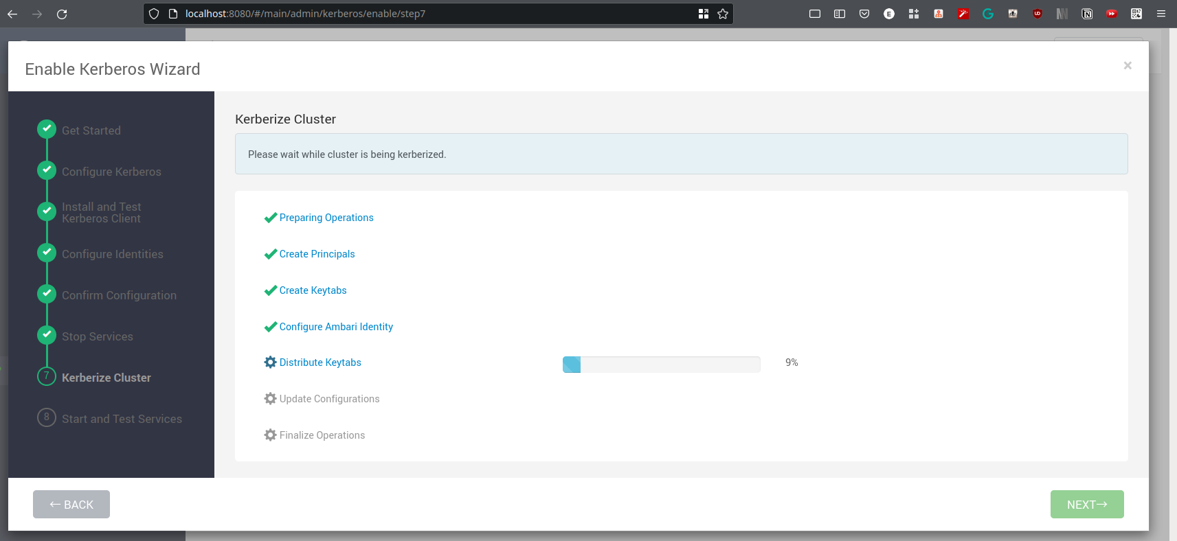 `Distribute Keytabs` and you would wait until it gets timeout.