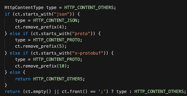 **Describe the bug (描述bug)** 我们在用brpc提供在线服务的时候遇到了个问题: 客户发来的请求类型是Content-Type=application/octet-stream的protobuf,我们在解析的时候发生了400 Bad Request的错误,x-bd-error-code: 1003。err_str:Fail to parse http body as XXX, Invalid json format  **To Reproduce (复现方法)** 我查看了一下brpc的代码逻辑,brpc内部只认为proto、x-protobuf、grpc开头的content-type是proto,其他情况会强制转换成json而导致报错。  **Expected behavior (期望行为)** 想问一下有没有支持Content-Type=application/octet-stream的办法? **Versions (各种版本)** OS:Ubuntu 18.04 Compiler: gcc 7.5 brpc: v1.0.0 protobuf: 3 **Additional context/screenshots (更多上下文/截图)** -- This is an automated message from the Apache Git Service. To respond to the message, please log on to GitHub and use the URL above to go to the specific comment. To unsubscribe, e-mail: [email protected] For queries about this service, please contact Infrastructure at: [email protected] --------------------------------------------------------------------- To unsubscribe, e-mail: [email protected] For additional commands, e-mail: [email protected]