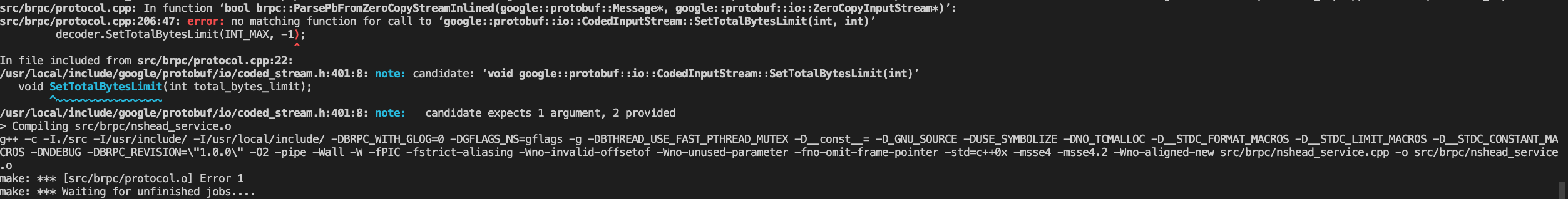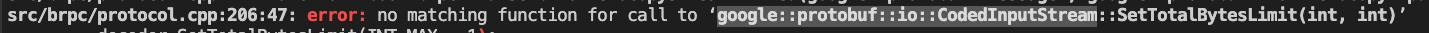 **Describe the bug (描述bug)** 环境: brpc release 1.0.0 依赖环境:其中一项是proptobuf3.18 在编译过程中会报错:  查询后发现 protobuf2和protobuf3中, google::protobuf::io::CodedInputStreamAPI发生变化: PB2中的定义:  PB3中的定义:  请问,如果兼容PB3的话是否可以修改BRPC中的函数调用:  修改后是否有什么后续的问题?? -- This is an automated message from the Apache Git Service. To respond to the message, please log on to GitHub and use the URL above to go to the specific comment. To unsubscribe, e-mail: [email protected] For queries about this service, please contact Infrastructure at: [email protected] --------------------------------------------------------------------- To unsubscribe, e-mail: [email protected] For additional commands, e-mail: [email protected]