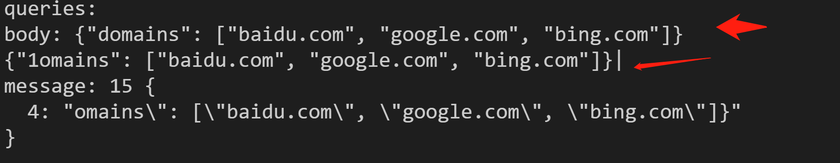 **Describe the bug (描述bug)** 测试代码为/example/http_c++ Protobuf 文件为:  想解析通过post请求发送到server端的json数据,于是在示例代码中新增如下行  输入信息如下:  第一个箭头部分是直接输出的request_attachment(); 第二个箭头是通过protobuf 解析数据后又序列化输出的内容; **Expected behavior (期望行为)** 正确解析request_attachment()中的domains 列表数据; **Versions ** OS: ubuntu20.04 Compiler: Ubuntu clang version 15.0.0-++20220606091511+5018a5dcbe70-1~exp1~20220606091601.535 brpc: 1.1.0 protobuf: 3.0.0 -- This is an automated message from the Apache Git Service. To respond to the message, please log on to GitHub and use the URL above to go to the specific comment. To unsubscribe, e-mail: [email protected] For queries about this service, please contact Infrastructure at: [email protected] --------------------------------------------------------------------- To unsubscribe, e-mail: [email protected] For additional commands, e-mail: [email protected]