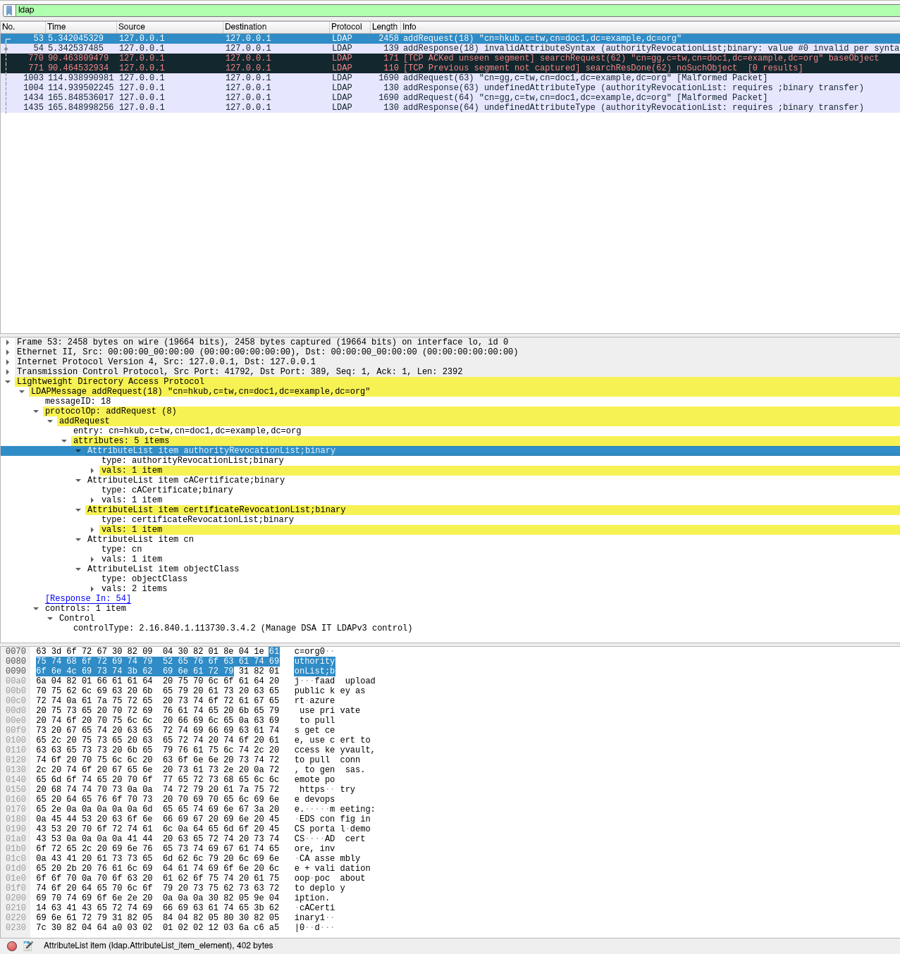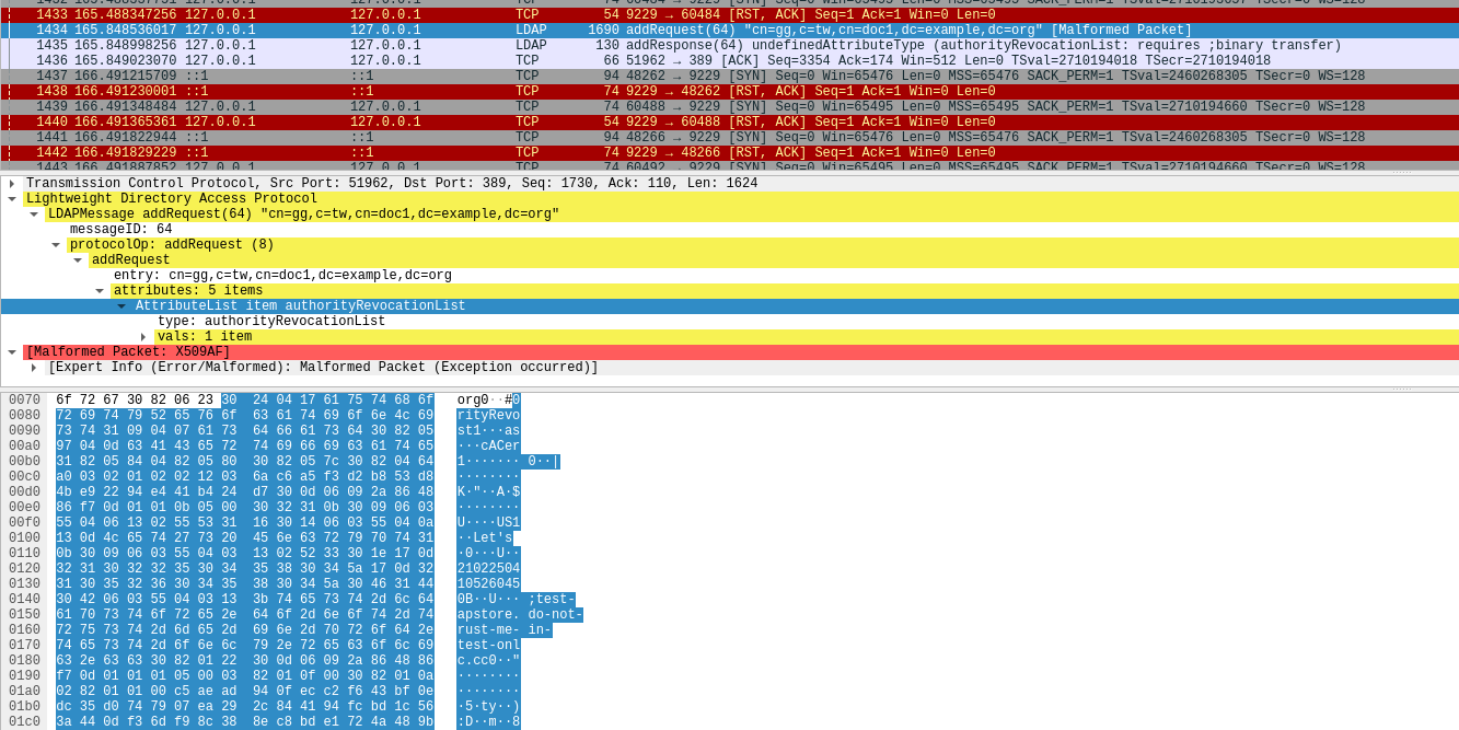 The good request is sent by jxplorer, the bad one is sent by apache directory