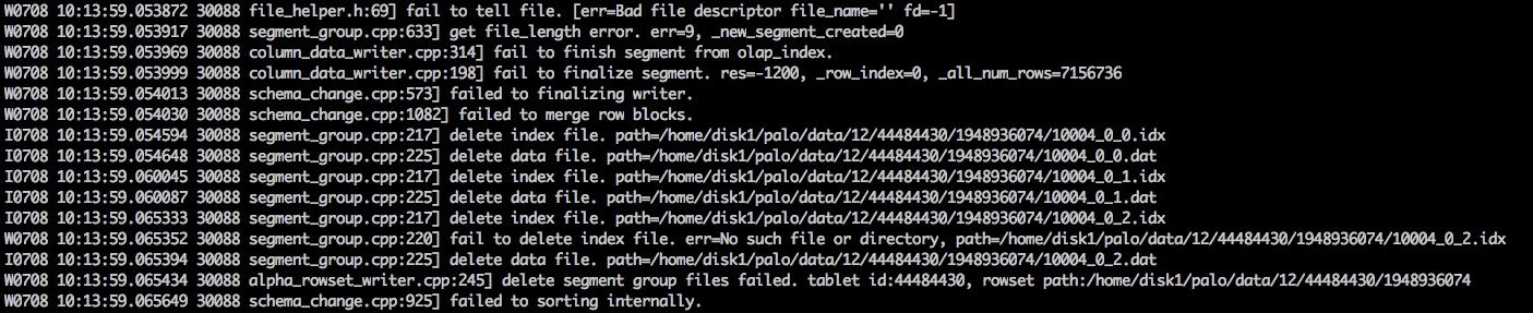 chaoyli opened a new issue #1440: non-sense segment is been generated URL: https://github.com/apache/incubator-doris/issues/1440 When doing schema change, error occurs when flushing segment.