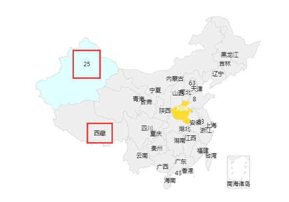 Gyyi opened a new issue #9269: 地图无数据的区域,无法使用formtter修改显示的label URL: https://github.com/apache/incubator-echarts/issues/9269 <!-- 为了方便我们能够复现和修复 bug,请遵从下面的规范描述您的问题。 --> ### One-line summary [问题简述]  地图无数据的区域,无法使用formtter修改显示的label ### Version & Environment [版本及环境] + ECharts version [ECharts 版本]: 5.2.0 + Browser version [浏览器类型和版本]: chrome 69 + OS Version [操作系统类型和版本]: win7 ### Expected behaviour [期望结果] 对于无数据的区域也调用fomatter设置显示的label ### ECharts option [ECharts配置项] <!-- Copy and paste your 'echarts option' here. --> <!-- [下方贴你的option,注意不要删掉下方 ```javascript 和 尾部的 ``` 字样。最好是我们能够直接运行的 option。如何得到能运行的 option 参见上方的 guidelines for contributing] --> ```javascript { "geo": { "map": "china", "label": { "show": false }, "itemStyle": { "areaColor": "#efefef", "borderColor": "#cdcdcd" }, "emphasis": { "itemStyle": { "areaColor": "#efefef" }, "label": { "show": false } } }, "visualMap": { "show": false, "seriesIndex": 0, "orient": "vertical", "textStyle": { "color": "#828691" }, "outOfRange": { "color": "#efefef", "borderColor": "#cdcdcd" }, "type": "piecewise", "pieces": [ { "min": 20, "max": 30, "color": "#e0feff" }, { "min": 15, "max": 20, "color": "#59c4e6" }, { "min": 10, "max": 15, "color": "#2189de" }] }, "series": [ { "type": "map", "data": [ { "name": "北京", "value": 63 }, { "name": "山东", "value": 8 }, { "name": "新疆", "value": 25 }, { "name": "江苏", "value": 33 }, { "name": "澳门", "value": 43 }], "mapType": "china", "label": { "show": true, formatter: (item) => { return item.value instanceof Array ? item.value[2] : (item.value || '123') } }, "itemStyle": { "areaColor": "#efefef", "borderColor": "#cdcdcd" }, "emphasis": { "label": { "show": true, "color": "#fff" } } }] } ``` ### Other comments [其他信息] <!-- For example: Screenshot or Online demo --> <!-- [例如,截图或线上实例 (JSFiddle/JSBin/Codepen)] -->