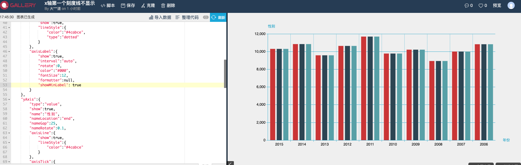 jay0815 commented on issue #10803: x轴第一个刻度线在特定分辨率下不显示 URL: https://github.com/apache/incubator-echarts/issues/10803#issuecomment-508418811 > 试试这个设为 true https://echarts.apache.org/zh/option.html#xAxis.axisLabel.showMinLabel 谢谢您的回复,但是我在线上试过了,还是不存在这个问题