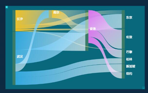 shellyaoo opened a new issue #10819: 桑基图怎么调整层级问题,如果不能,希望能给出调整层级的api URL: https://github.com/apache/incubator-echarts/issues/10819 Version 4.2.1 Steps to reproduce  如图,这是官方的默认层级, 但是我现在要弄成,只按照流出节点开始,从左往右层级逐渐增加,从上往下,层级逐渐降低, 比如图中武汉到南京的层级,需要在武汉到南京这个节点往上开始所有节点的层级下面, 武汉到东京的层级也压在了武汉到香港的层级上面 series 数据 [{ "src": "长沙", "dst": "香港", "value": 190 }, { "src": "长沙", "dst": "东京", "value": 50 }, { "src": "长沙", "dst": "伦敦", "value": 20 }, { "src": "长沙", "dst": "巴黎", "value": 10 }, { "src": "武汉", "dst": "香港", "value": 230 }, { "src": "武汉", "dst": "东京", "value": 180 }, { "src": "武汉", "dst": "柏林", "value": 70 }, { "src": "武汉", "dst": "新加坡", "value": 100 }, { "src": "香港", "dst": "纽约", "value": 80 }, { "src": "香港", "dst": "伦敦", "value": 240 }, { "src": "香港", "dst": "巴黎", "value": 100 }, { "src": "武汉", "dst": "南京", "value": 100 }, { "src": "南京", "dst": "香港", "value": 100 } ] What is actually happening? 无法调整层级