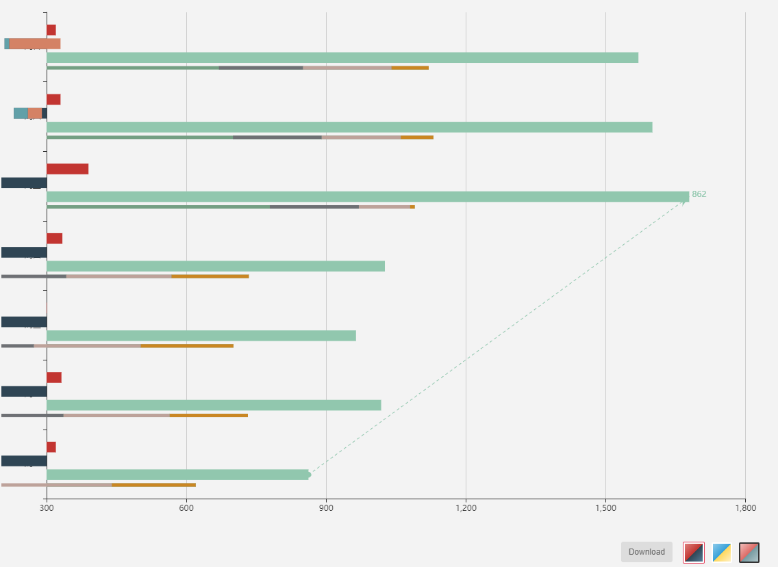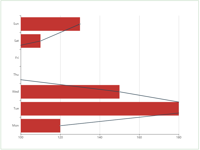 oustn opened a new pull request #11007: fix: 修复柱图超出 extent 范围 URL: https://github.com/apache/incubator-echarts/pull/11007 柱形图针对手动设置 Scale 的 min, max 属性有两个问题: 1. 超出 scale extent 的值依然会绘制 2. 堆叠柱形图手动设置 min, max 后混乱 Example1: ``` option = { yAxis: { type: 'category', data: ['Mon', 'Tue', 'Wed', 'Thu', 'Fri', 'Sat', 'Sun'] }, xAxis: { type: 'value', min: 100, max: 180, }, series: [{ data: [120, 200, 150, 80, 70, 110, 130], type: 'bar'}, { data: [120, 200, 150, 80, 70, 110, 130], type: 'line' }], tooltip : { trigger: 'axis', axisPointer : { // 坐标轴指示器,坐标轴触发有效 type : 'shadow' // 默认为直线,可选为:'line' | 'shadow' } }, }; ``` Result:  Expect:  Example2: ``` option = { tooltip : { trigger: 'axis', axisPointer : { // 坐标轴指示器,坐标轴触发有效 type : 'shadow' // 默认为直线,可选为:'line' | 'shadow' } }, legend: { data:['直接访问','邮件营销','联盟广告','视频广告','搜索引擎','百度','谷歌','必应','其他'] }, grid: { left: '3%', right: '4%', bottom: '3%', containLabel: true }, yAxis : [ { type : 'category', data : ['周一','周二','周三','周四','周五','周六','周日'] } ], xAxis : [ { type : 'value', min: 300, } ], series : [ { name:'直接访问', type:'bar', data:[320, 332, 301, 334, 390, 330, 320] }, { name:'邮件营销', type:'bar', stack: '广告', data:[120, 132, 101, 134, 90, 230, 210] }, { name:'联盟广告', type:'bar', stack: '广告', data:[220, 182, 191, 234, 290, 330, 310] }, { name:'视频广告', type:'bar', stack: '广告', data:[150, 232, 201, 154, 190, 330, 410] }, { name:'搜索引擎', type:'bar', data:[862, 1018, 964, 1026, 1679, 1600, 1570], markLine : { lineStyle: { normal: { type: 'dashed' } }, data : [ [{type : 'min'}, {type : 'max'}] ] } }, { name:'百度', type:'bar', barWidth : 5, stack: '搜索引擎', data:[620, 732, 701, 734, 1090, 1130, 1120] }, { name:'谷歌', type:'bar', stack: '搜索引擎', data:[120, 132, 101, 134, 290, 230, 220] }, { name:'必应', type:'bar', stack: '搜索引擎', data:[60, 72, 71, 74, 190, 130, 110] }, { name:'其他', type:'bar', stack: '搜索引擎', data:[62, 82, 91, 84, 109, 110, 120] } ] }; ``` Result:  Expect: