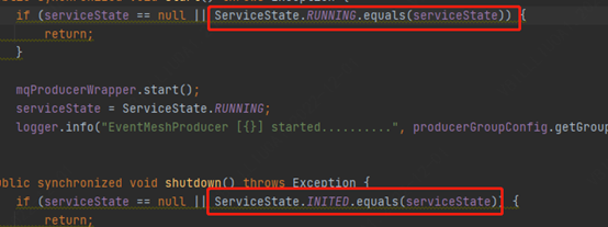 ### Search before asking - [X] I had searched in the [issues](https://github.com/apache/eventmesh/issues?q=is%3Aissue) and found no similar issues. ### Enhancement Request  located at: eventmesh-runtime/src/main/java/org/apache/eventmesh/runtime/core/protocol/grpc/producer/EventMeshProducer.java line 77 87 analysis and explanation: This method calls the equals(Object) method on an enum instance. Since enums values are singletons, you can use == to safely compare two enum values. In fact, the implementation for Enum.equals does just that. ### Describe the solution you'd like Change to use "==". ### Are you willing to submit PR? - [ ] Yes I am willing to submit a PR! -- This is an automated message from the Apache Git Service. To respond to the message, please log on to GitHub and use the URL above to go to the specific comment. To unsubscribe, e-mail: [email protected] For queries about this service, please contact Infrastructure at: [email protected] --------------------------------------------------------------------- To unsubscribe, e-mail: [email protected] For additional commands, e-mail: [email protected]