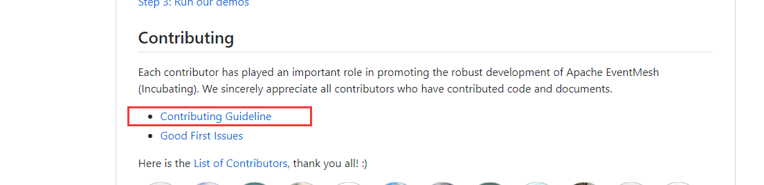 ### Search before asking - [X] I had searched in the [issues](https://github.com/apache/eventmesh/issues?q=is%3Aissue) and found no similar issues. ### Documentation Related The incorrect link associated with the Contributing Guideline in the README.md file  ### Are you willing to submit PR? - [X] Yes I am willing to submit a PR! -- This is an automated message from the Apache Git Service. To respond to the message, please log on to GitHub and use the URL above to go to the specific comment. To unsubscribe, e-mail: [email protected] For queries about this service, please contact Infrastructure at: [email protected] --------------------------------------------------------------------- To unsubscribe, e-mail: [email protected] For additional commands, e-mail: [email protected]