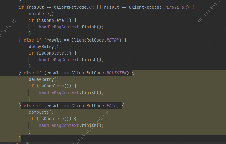 ### Search before asking - [X] I had searched in the [issues](https://github.com/apache/eventmesh/issues?q=is%3Aissue) and found no similar issues. ### Enhancement Request  located at: eventmesh-runtime/src/main/java/org/apache/eventmesh/runtime/core/protocol/http/push/AsyncHTTPPushRequest.java line 233-247 analysis and explanation: If the same logic is truly needed for both instances, then in an if chain they should be combined, or for a switch, one should fall through to the other. ### Describe the solution you'd like  ### Are you willing to submit PR? - [ ] Yes I am willing to submit a PR! -- This is an automated message from the Apache Git Service. To respond to the message, please log on to GitHub and use the URL above to go to the specific comment. To unsubscribe, e-mail: [email protected] For queries about this service, please contact Infrastructure at: [email protected] --------------------------------------------------------------------- To unsubscribe, e-mail: [email protected] For additional commands, e-mail: [email protected]