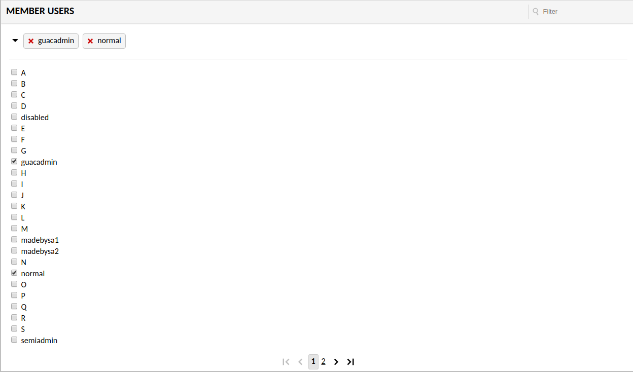 displayed, with checkboxes allowing those users/groups to be added/removed: