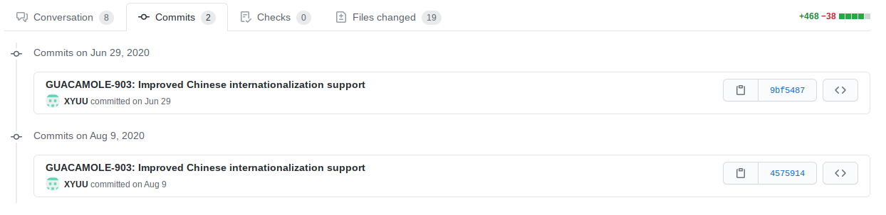 Hi @XYUU, the commits for this PR still show two duplicate messages:  As @necouchman mentioned, can you please: > Either collapse all of your commits into a single commit, or update the commit messages such that they describe the actual changes being made in each of the commits instead of a generic message ... Thanks! Reviewing the translation changes themselves, things look fine to me. The only issue I see is with the existence of those two duplicate commits. ---------------------------------------------------------------- This is an automated message from the Apache Git Service. To respond to the message, please log on to GitHub and use the URL above to go to the specific comment. For queries about this service, please contact Infrastructure at: [email protected]