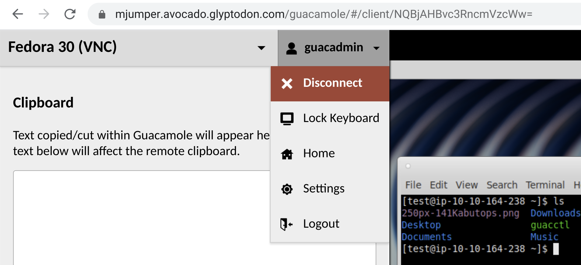 So, I've been plowing through the PR backlog and came across these changes. Pulling them to test things out locally, I see the new menu option:  but clicking "Lock keyboard" seems to have no effect, at least when testing from my Chromebook. The Guacamole menu closes as a result of clicking the menu item, but that's it. Is there something I'm missing? Regarding the functionality itself: * We should probable use a different icon. * What if the user wishes to unlock the keyboard? Should this be a checkbox? * Would locating this elsewhere within Guacamole menu be better? ---------------------------------------------------------------- This is an automated message from the Apache Git Service. To respond to the message, please log on to GitHub and use the URL above to go to the specific comment. For queries about this service, please contact Infrastructure at: [email protected]