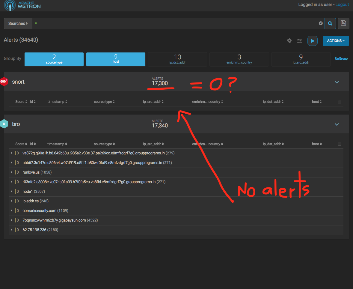 be 0. The count of 17,300 is tallying how many Snort alerts there are. But
