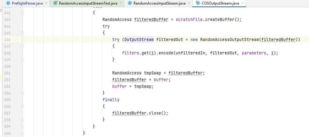 > RandomAccessInputStream and RandomAccessOutputStream are simple wrapper classes and close isn't needed at all. Maybe we should just add an empty implementation of close to document that. Right now try-with-resources avoids sonar warnings Yes, I've seen several cases where streams could not be closed. But why are you using the trick for COSOutputStream.close? You use fake try-with-resources statement to avoid sonar warnings, then you use swapping of streams to close right stream. Why not use try-with-resources with the correct stream and without RandomAccessOutputStream? I understand, maybe this code matches the documentation, but it is too confusing, IMO.  -- This is an automated message from the Apache Git Service. To respond to the message, please log on to GitHub and use the URL above to go to the specific comment. For queries about this service, please contact Infrastructure at: [email protected] --------------------------------------------------------------------- To unsubscribe, e-mail: [email protected] For additional commands, e-mail: [email protected]