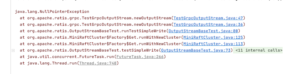 ## What changes were proposed in this pull request? `TestGrpcOutputStream` has failed both `testKillLeader` and `testSimpleWrite`. This PR fixes `testSimpleWrite`. For the failure of `testSimpleWrite`:  It is because the CLUSTER hasn't elect a leader. ## What is the link to the Apache JIRA https://issues.apache.org/jira/browse/RATIS-1064 ## How was this patch tested? UT ---------------------------------------------------------------- This is an automated message from the Apache Git Service. To respond to the message, please log on to GitHub and use the URL above to go to the specific comment. For queries about this service, please contact Infrastructure at: [email protected]