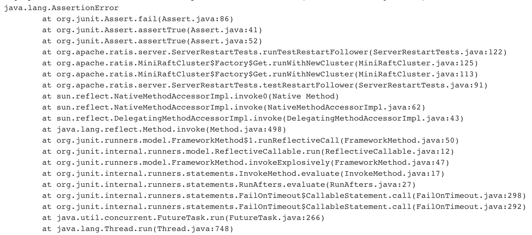 **What's the problem ?**  **What's the reason ?** I think the author of following code want to try 10 seconds until `followerState.getLastAppliedIndex() >= leaderLastIndex`, but actually `JavaUtils.attemptRepeatedly` will not retry unless the statement throw exception as the image shows. ``` // make sure the restarted follower can catchup final ServerState followerState = cluster.getRaftServerImpl(followerId).getState(); JavaUtils.attemptRepeatedly(() -> followerState.getLastAppliedIndex() >= leaderLastIndex, 10, ONE_SECOND, "follower catchup", LOG); ```  **How to fix ?** I fix all the error use of JavaUtils.attemptRepeatedly to check boolean condition. ---------------------------------------------------------------- This is an automated message from the Apache Git Service. To respond to the message, please log on to GitHub and use the URL above to go to the specific comment. For queries about this service, please contact Infrastructure at: [email protected]