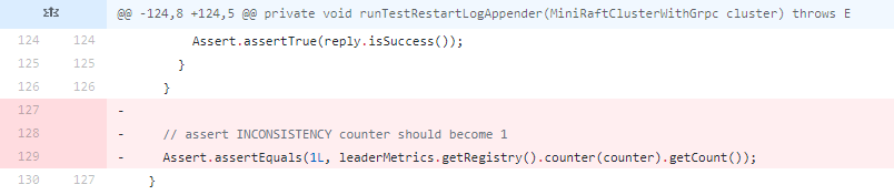 @szetszwo @lokeshj1703 @bshashikant I think this patch does not generate new failed UT. I trigger CI several times, all the [failed UT](https://github.com/runzhiwang/incubator-ratis/runs/628048866) are in the list of [RATIS-863](https://issues.apache.org/jira/browse/RATIS-863). I together with @bshashikant summary all the failed UT generated by ratis/master in RATIS-863. Besides, the failed UT in this PR has nothing to do with this patch. You can find the reason in [RATIS-912](https://issues.apache.org/jira/browse/RATIS-912) I delete the following assert, because when we restart new LogAppender, the old LogAppender maybe still alive, because we do not wait old LogAppender turn dead before start new LogAppender.  ---------------------------------------------------------------- This is an automated message from the Apache Git Service. To respond to the message, please log on to GitHub and use the URL above to go to the specific comment. For queries about this service, please contact Infrastructure at: [email protected]