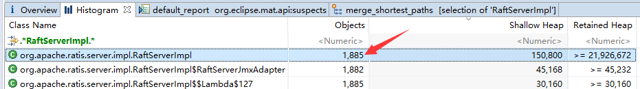 As the image shows, there are 1885 instances of RaftServerImpl, most of