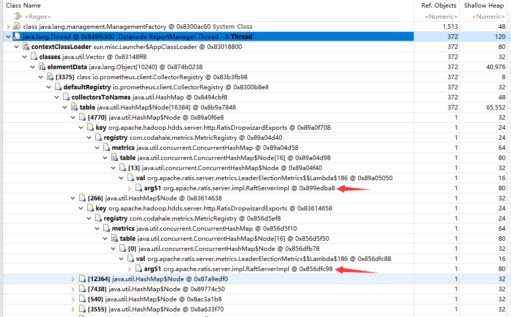Datanode ReportManager Thread -> prometheus -> HashMap. So 1513 RaftServerImpl