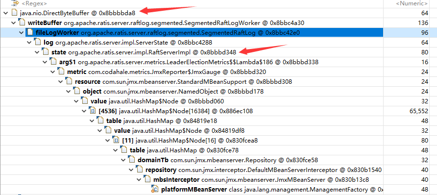 5. 2038 DirectByteBuffer, and 1885 held by RaftServerImpl