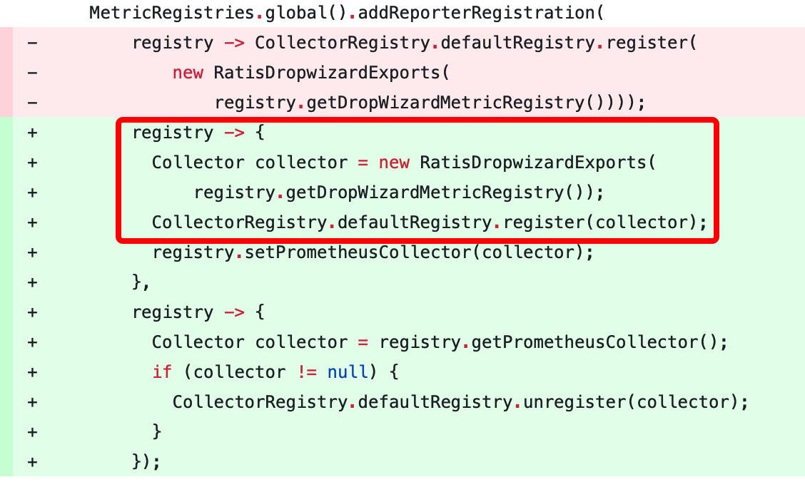 But because ozone pass a lambda to ratis to register collector in