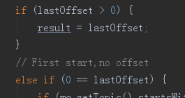 baomingyu opened a new issue #1135: The problem of new consumer with 'CONSUME_FROM_LAST_OFFSET' model URL: https://github.com/apache/rocketmq/issues/1135 when i create consumer using a new consumer group with 'CONSUME_FROM_LAST_OFFSET' model and subscribe a topic that has been created and has contained messages , it will consumer all exit messages rather than begin from last offset. I have found this problem is here .RebalancePushImpl.java -- > computePullFromWhere "case CONSUME_FROM_LAST_OFFSET" , when user new consumer group the result will be 0 rather than last offset or max offset ,because broker will not do return -1 . so it will be modified with such way