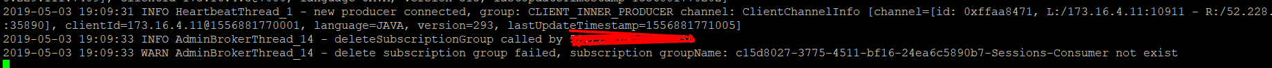 jothipandiyanjp opened a new issue #1193: Subscription group not deleting URL: https://github.com/apache/rocketmq/issues/1193 I am trying to delete a subscription group from the broker using the following command. ./mqadmin deleteSubGroup -b serverip:10911 -c DefaultCluster -g c15d8027-3775-4511-bf16-24ea6c5890b7-Sessions-Consumer -n serverip:9876 But while deleting in a broker logs it prints as follow: deleteSubscriptionGroup called by **** 2019-05-03 19:08:38 WARN AdminBrokerThread_5 - delete subscription group failed, subscription groupName: c15d8027-3775-4511-bf16-24ea6c5890b7-Sessions-Consumer not exist   How to solve this issue? Is any suggestion to delete a subscription group from the broker?