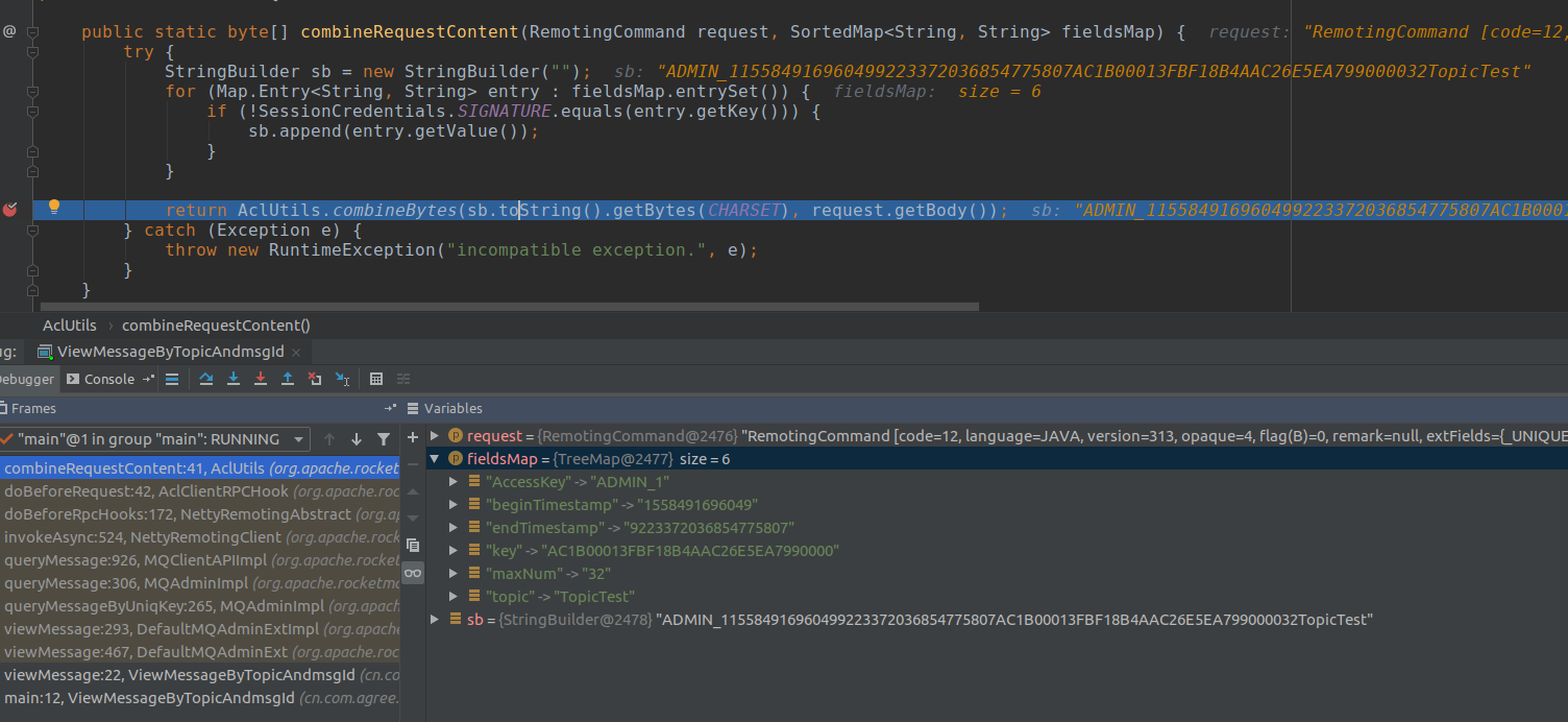 mrttx opened a new issue #1216: ext fields not signed in client side URL: https://github.com/apache/rocketmq/issues/1216 The issue tracker is **ONLY** used for bug report(feature request need to follow [RIP process](https://github.com/apache/rocketmq/wiki/RocketMQ-Improvement-Proposal)). Keep in mind, please check whether there is an existing same report before your raise a new one. Alternately (especially if your communication is not a bug report), you can send mail to our [mailing lists](http://rocketmq.apache.org/about/contact/). We welcome any friendly suggestions, bug fixes, collaboration and other improvements. Please ensure that your bug report is clear and that it is complete. Otherwise, we may be unable to understand it or to reproduce it, either of which would prevent us from fixing the bug. We strongly recommend the report(bug report or feature request) could include some hints as the following: **BUG REPORT** 1. Please describe the issue you observed: - query msg by unique key failed (org.apache.rocketmq.tools.admin.DefaultMQAdminExt#viewMessage(java.lang.String, java.lang.String)) - remoting.log: 2019-05-22 12:41:06 ERROR QueryMessageThread_7 - process request exception org.apache.rocketmq.acl.common.AclException: Check signature failed for accessKey=ADMIN_1 at org.apache.rocketmq.acl.plain.PlainPermissionLoader.validate(PlainPermissionLoader.java:210) ~[rocketmq-acl-4.5.0.jar:4.5.0] at org.apache.rocketmq.acl.plain.PlainAccessValidator.validate(PlainAccessValidator.java:132) ~[rocketmq-acl-4.5.0.jar:4.5.0] at org.apache.rocketmq.broker.BrokerController$10.doBeforeRequest(BrokerController.java:510) ~[rocketmq-broker-4.5.0.jar:4.5.0] at org.apache.rocketmq.remoting.netty.NettyRemotingAbstract.doBeforeRpcHooks(NettyRemotingAbstract.java:172) ~[rocketmq-remoting-4.5.0.jar:4.5.0] at org.apache.rocketmq.remoting.netty.NettyRemotingAbstract$1.run(NettyRemotingAbstract.java:202) ~[rocketmq-remoting-4.5.0.jar:4.5.0] at org.apache.rocketmq.remoting.netty.RequestTask.run(RequestTask.java:80) [rocketmq-remoting-4.5.0.jar:4.5.0] at java.util.concurrent.Executors$RunnableAdapter.call(Executors.java:511) [na:1.8.0_212] at java.util.concurrent.FutureTask.run(FutureTask.java:266) [na:1.8.0_212] at java.util.concurrent.ThreadPoolExecutor.runWorker(ThreadPoolExecutor.java:1149) [na:1.8.0_212] at java.util.concurrent.ThreadPoolExecutor$Worker.run(ThreadPoolExecutor.java:624) [na:1.8.0_212] at java.lang.Thread.run(Thread.java:748) [na:1.8.0_212] 2019-05-22 12:41:06 ERROR QueryMessageThread_7 - RemotingCommand [code=12, language=JAVA, version=313, opaque=4, flag(B)=0, remark=null, extFields={_UNIQUE_KEY_QUERY=true, beginTimestamp=1558491696049, Signature=m/iltJe7YXe4KPwDi5rheCjVBYc=, topic=TopicTest, AccessKey=ADMIN_1, maxNum=32, endTimestamp=9223372036854775807, key=AC1B00013FBF18B4AAC26E5EA7990000}, serializeTypeCurrentRPC=JSON] - client:  2. Please tell us about your environment: - RocketMQ 4.5.0 - aclEnable=true - JDK 1.8 3. Other information (e.g. detailed explanation, logs, related issues, suggestions how to fix, etc): **FEATURE REQUEST** 1. Please describe the feature you are requesting. 2. Provide any additional detail on your proposed use case for this feature. 2. Indicate the importance of this issue to you (blocker, must-have, should-have, nice-to-have). Are you currently using any workarounds to address this issue? 4. If there are some sub-tasks using -[] for each subtask and create a corresponding issue to map to the sub task: - [sub-task1-issue-number](example_sub_issue1_link_here): sub-task1 description here, - [sub-task2-issue-number](example_sub_issue2_link_here): sub-task2 description here, - ...