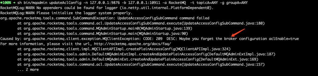 When broker does not configure acl=true,the following error will appear  After adding hints,the following error will appear  The broker's log will also report the correct error  ---------------------------------------------------------------- This is an automated message from the Apache Git Service. To respond to the message, please log on to GitHub and use the URL above to go to the specific comment. For queries about this service, please contact Infrastructure at: [email protected]