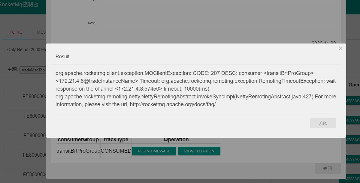 message resend seem MQ timeout 10s then retryconsume ok, but network is seem