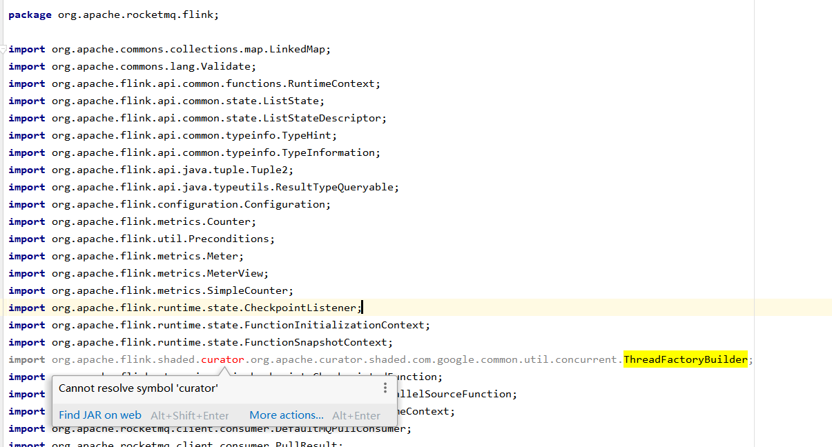 An exception occurred when I upgraded the Flink version to 1.11.2 in the POM file. In the org. Apache. Rocketmq. Flink. RocketMQSource class: ` always resolve a symbol curator ` I want to know how I can properly upgrade the Flink version. Thank you very much. ---------------------------------------------------------------- This is an automated message from the Apache Git Service. To respond to the message, please log on to GitHub and use the URL above to go to the specific comment. For queries about this service, please contact Infrastructure at: [email protected]