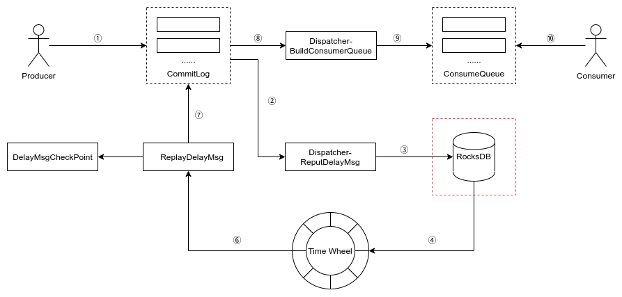 @vongosling Based on this implementation, we have a better optimization plan. We can use [RocksDB](https://github.com/facebook/rocksdb) to save delayed messages.  **This has the following advantages:** - Delay messages can be stored separately from normal messages - Save the message with the delivery time as the key, which can serve as an index - When the message is delivered, the commitLog will not be read randomly - It is also necessary to record the messages that have been delivered to avoid the problem of repeated message delivery caused by master-slave switching **Of course it has the following disadvantages:** - RocksDB will be added to RocketMQ, resulting in an increase in RocketMQ dependency -- This is an automated message from the Apache Git Service. To respond to the message, please log on to GitHub and use the URL above to go to the specific comment. For queries about this service, please contact Infrastructure at: [email protected]