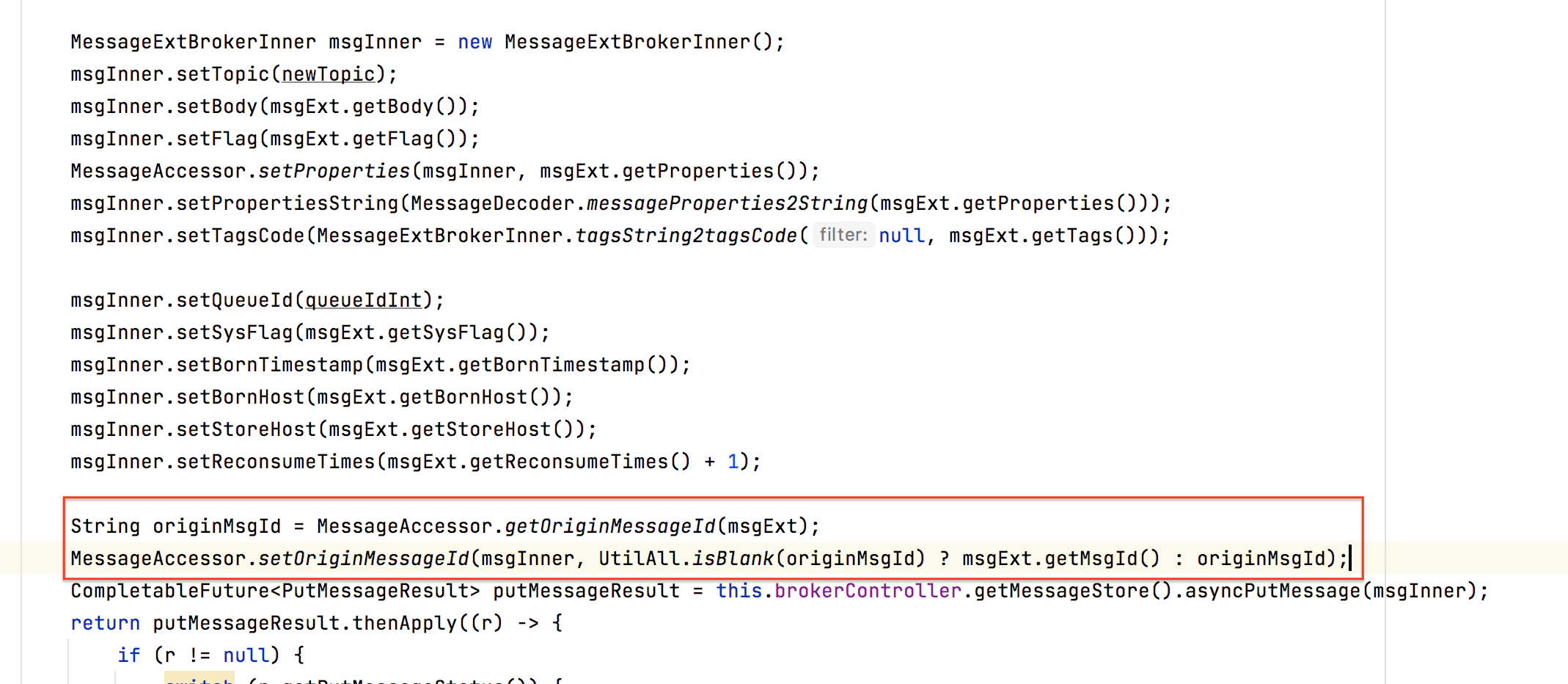**BUG REPORT** 1. Please describe the issue you observed: - What did you do (The steps to reproduce)? Resend DLQ Message with properties field `RETRY_TOPIC` and `ORIGIN_MESSAGE_ID` **Related issue** https://github.com/apache/rocketmq/issues/2436 - What did you expect to see? Resend DLQ message normally. - What did you see instead? When I set consumer config **maxReconsumeTimes to 0**, I could not find the `ORIGIN_MESSAGE_ID` field in DLQ message. And resend failed.  2. Please tell us about your environment: rocketmq 4.8 JDK 8 3. Other information (e.g. detailed explanation, logs, related issues, suggestions how to fix, etc): asyncConsumerSendMsgBack method set ORIGIN_MESSAGE_ID filed to properties, but **does not refresh properties string**.  -- This is an automated message from the Apache Git Service. To respond to the message, please log on to GitHub and use the URL above to go to the specific comment. For queries about this service, please contact Infrastructure at: [email protected]