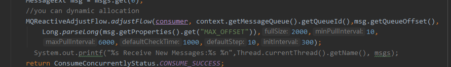 利用tcp滑动窗口的原理,为批量消费提供了一个动态窗口,可以根据阈值以及上下限,实时调整DefaultMQPushConsumer到broker拉取数据的间隔时间,根据与阈值比较每次加或减固定的步长,并为之提供了使用例子。 如图:  允许堆积的最大值为2000,并设定其它参数。  每次有消息push到客户端,会判断是否到了用户设置的检验间隔时间,如果是,则采集数据动态调整拉取间隔。当堆积数量超过阈值,每次缩短拉取时间。 ![Uploading 56AMTK%JSE2%[1R~~R@1%RJ.png…]() 如果少于阈值,则增加。 如果没有消息到达,则不做处理不影响拉取间隔。 -- This is an automated message from the Apache Git Service. To respond to the message, please log on to GitHub and use the URL above to go to the specific comment. For queries about this service, please contact Infrastructure at: [email protected]