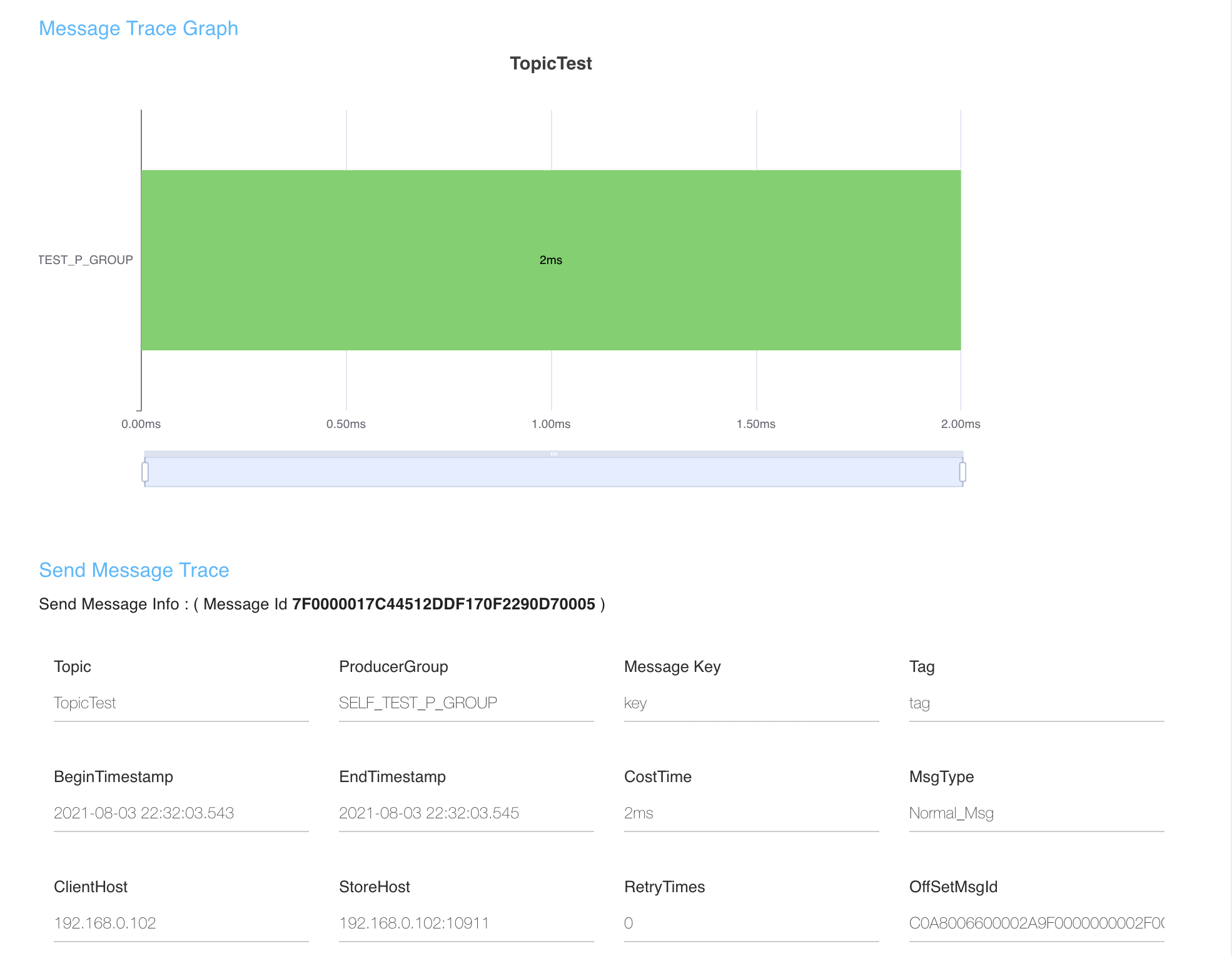 ## What is the purpose of the change Send test message with message trace ## Brief changelog User can choose send test message with message trace or not. ## Verifying this change ### Send test message with trace on.  ### Message Trace  Follow this checklist to help us incorporate your contribution quickly and easily. Notice, `it would be helpful if you could finish the following 5 checklist(the last one is not necessary)before request the community to review your PR`. - [x] Make sure there is a [Github issue](https://github.com/apache/rocketmq/issues) filed for the change (usually before you start working on it). Trivial changes like typos do not require a Github issue. Your pull request should address just this issue, without pulling in other changes - one PR resolves one issue. - [x] Format the pull request title like `[ISSUE #123] Fix UnknownException when host config not exist`. Each commit in the pull request should have a meaningful subject line and body. - [x] Write a pull request description that is detailed enough to understand what the pull request does, how, and why. - [x] Write necessary unit-test(over 80% coverage) to verify your logic correction, more mock a little better when cross module dependency exist. If the new feature or significant change is committed, please remember to add integration-test in [test module](https://github.com/apache/rocketmq/tree/master/test). - [x] Run `mvn -B clean apache-rat:check findbugs:findbugs checkstyle:checkstyle` to make sure basic checks pass. Run `mvn clean install -DskipITs` to make sure unit-test pass. Run `mvn clean test-compile failsafe:integration-test` to make sure integration-test pass. - [ ] If this contribution is large, please file an [Apache Individual Contributor License Agreement](http://www.apache.org/licenses/#clas). -- This is an automated message from the Apache Git Service. To respond to the message, please log on to GitHub and use the URL above to go to the specific comment. To unsubscribe, e-mail: [email protected] For queries about this service, please contact Infrastructure at: [email protected]