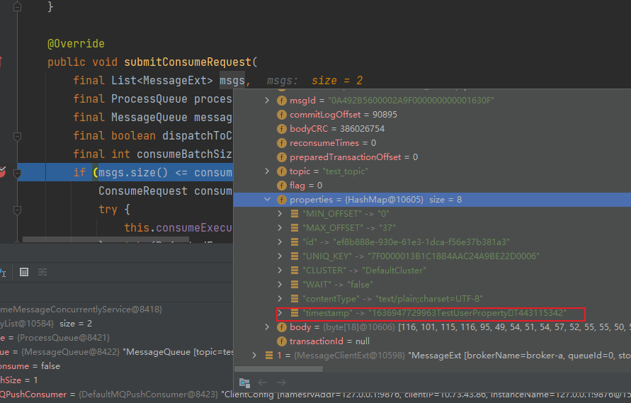 消费消息时,自定义的Property无法拿到,这个Property跑到timestamp中去了