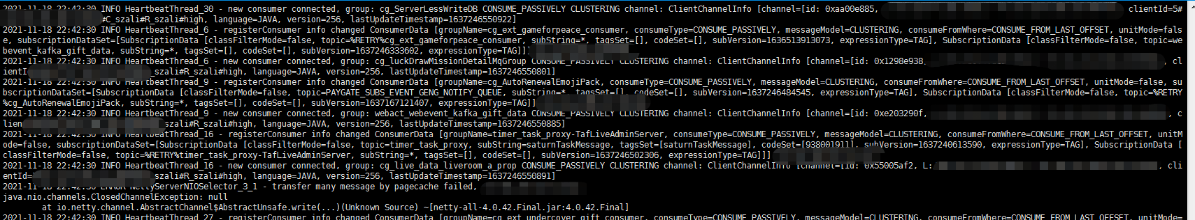 @dongeforever The broker version is 4.5.0; broker.log  watermark.log  gc.log  Because this is an online service, it was urgently restored at that time, and there was no stack information. rocketmq_client.log has been lost -- This is an automated message from the Apache Git Service. To respond to the message, please log on to GitHub and use the URL above to go to the specific comment. To unsubscribe, e-mail: [email protected] For queries about this service, please contact Infrastructure at: [email protected]