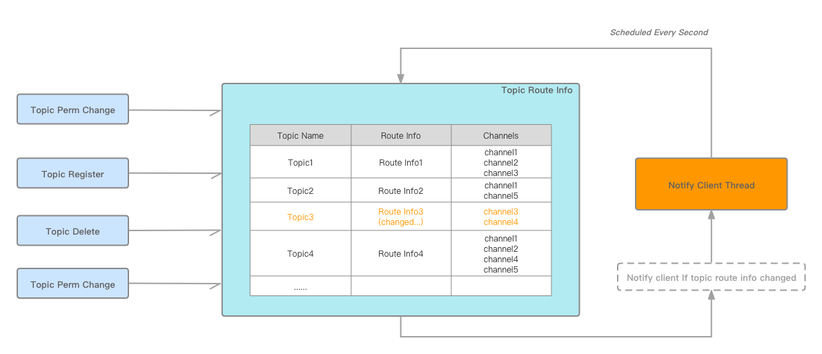 There are many clients that subscribe Topic Routes from NameServer. When a