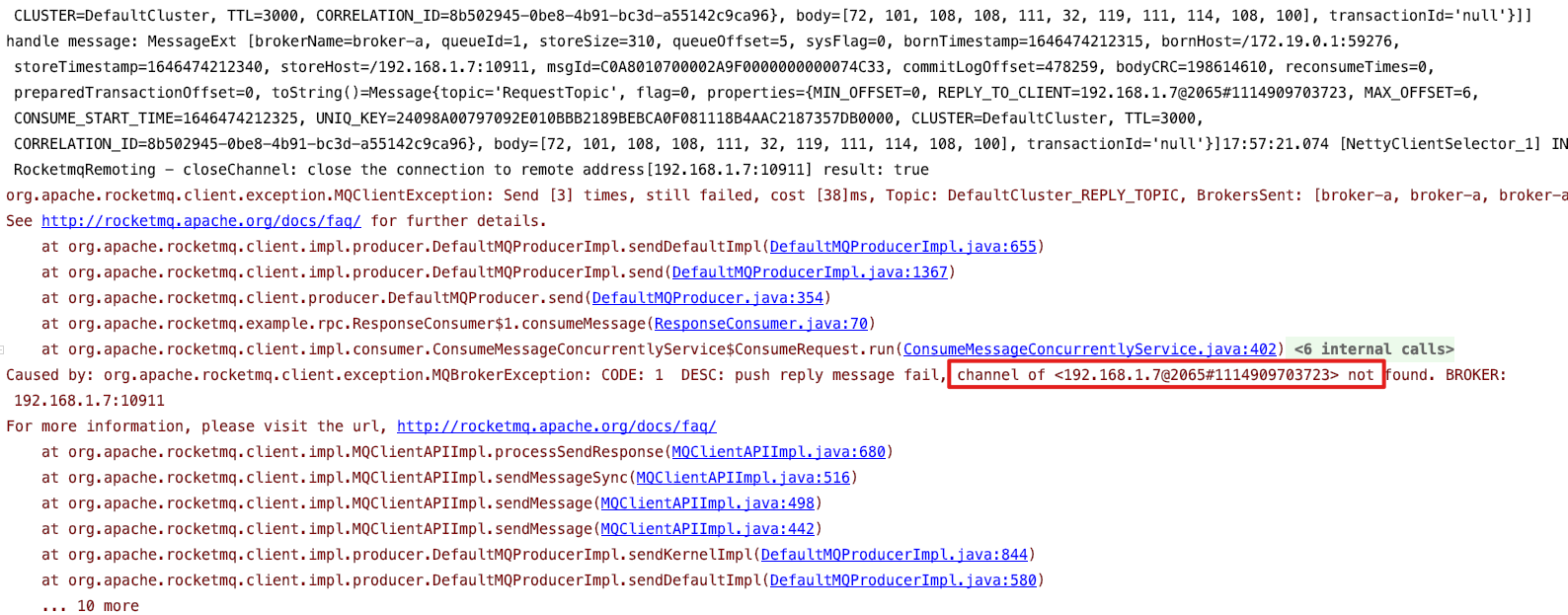 The consumer reply failed