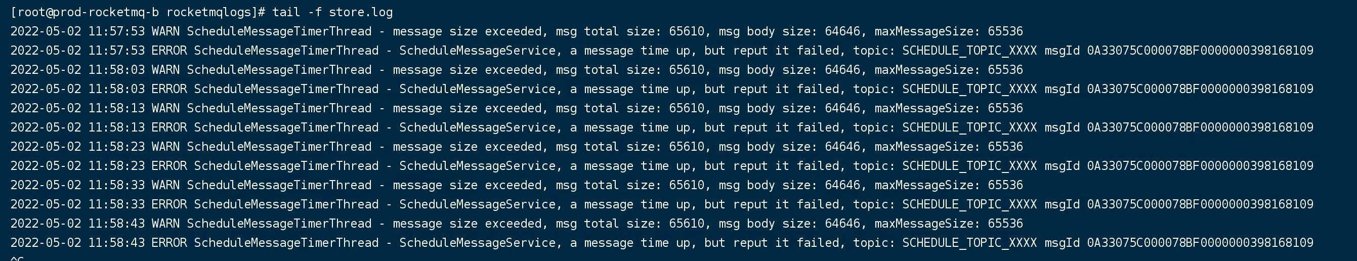 > @ni-ze > > 你复现的问题,可能跟这个Issue关系不大,但确实是一个比较好的问题,可以考虑单独开一个Issue解决。 > > 在定时、事务、重试等场景中,不止是会改Topic名字,还会新增一些属性等,这个地方一直是个设计脆弱点。 > > 看看如下方式能否规避这个问题: > > 1. 用户配置的maxMessageSize,只对body生效,不包含属性长度和Topic长度 > 2. 对于一次发送的链路,Topic长度和属性长度,要按照最大值 - maxBlank来确定;二次发送链路(从定时或者事务里出来的),增加一个特殊的参数,以确保要发送成功; 从该同学的报错日志来看,延迟消息投递失败,的确是长度超长引起的。  -- This is an automated message from the Apache Git Service. To respond to the message, please log on to GitHub and use the URL above to go to the specific comment. To unsubscribe, e-mail: [email protected] For queries about this service, please contact Infrastructure at: [email protected]