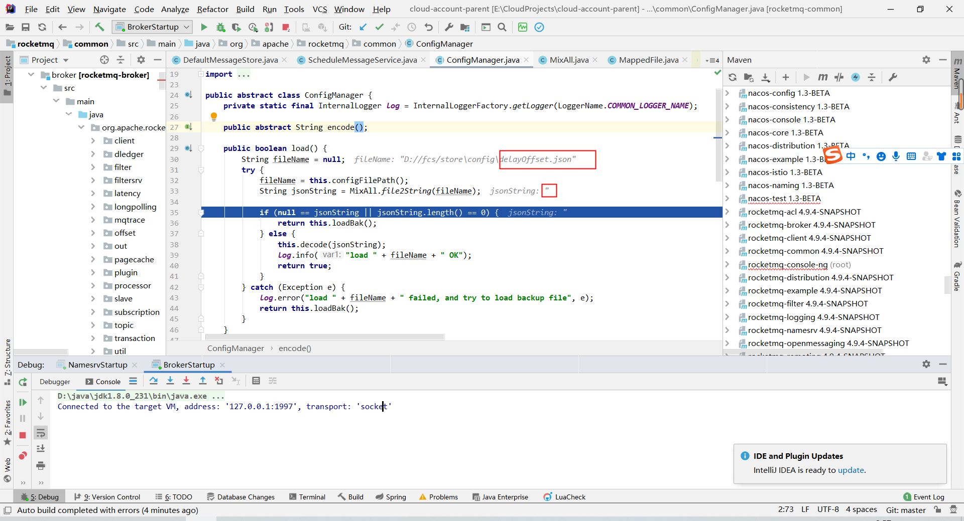 加载delayOffset.json时发现如下图的现象,导致解析异常。  附件 [delayOffset.zip](https://github.com/apache/rocketmq/files/8810542/delayOffset.zip) -- This is an automated message from the Apache Git Service. To respond to the message, please log on to GitHub and use the URL above to go to the specific comment. To unsubscribe, e-mail: [email protected] For queries about this service, please contact Infrastructure at: [email protected]