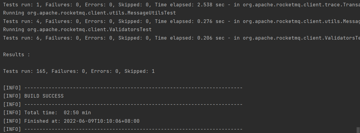 > <img alt="image" width="678" src="https://user-images.githubusercontent.com/58988019/172747848-4223f672-4e7a-4594-8fc6-c98a60a9f59d.png"> > > Pls check why the test failed.  I didn't meet this error when running test. And also you can find the test passed in the Travis CI - Pull Request build detail, line 3086. [https://app.travis-ci.com/github/apache/rocketmq/jobs/572672220](url) -- This is an automated message from the Apache Git Service. To respond to the message, please log on to GitHub and use the URL above to go to the specific comment. To unsubscribe, e-mail: [email protected] For queries about this service, please contact Infrastructure at: [email protected]