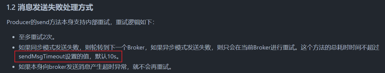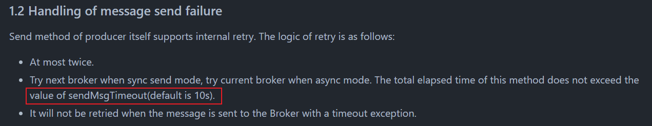 1、Please describe the issue you observed:   As the picture above shows, the default value of the parameter sendMsgTimeout is 10000, but in the code, the default value is 3000. https://github.com/apache/rocketmq/blob/bda0ae0305863cc5fa2e0578439dfa4f4d9908b3/client/src/main/java/org/apache/rocketmq/client/producer/DefaultMQProducer.java#L102 -- This is an automated message from the Apache Git Service. To respond to the message, please log on to GitHub and use the URL above to go to the specific comment. To unsubscribe, e-mail: [email protected] For queries about this service, please contact Infrastructure at: [email protected]