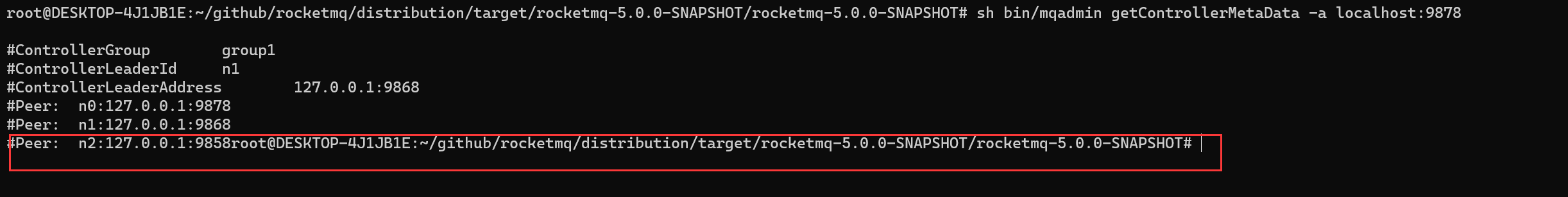 as following:  when I use ```shell sh bin/mqadmin getControllerMetaData -a localhost:9878 ``` The last line print info is on the same line as the command -- This is an automated message from the Apache Git Service. To respond to the message, please log on to GitHub and use the URL above to go to the specific comment. To unsubscribe, e-mail: [email protected] For queries about this service, please contact Infrastructure at: [email protected]