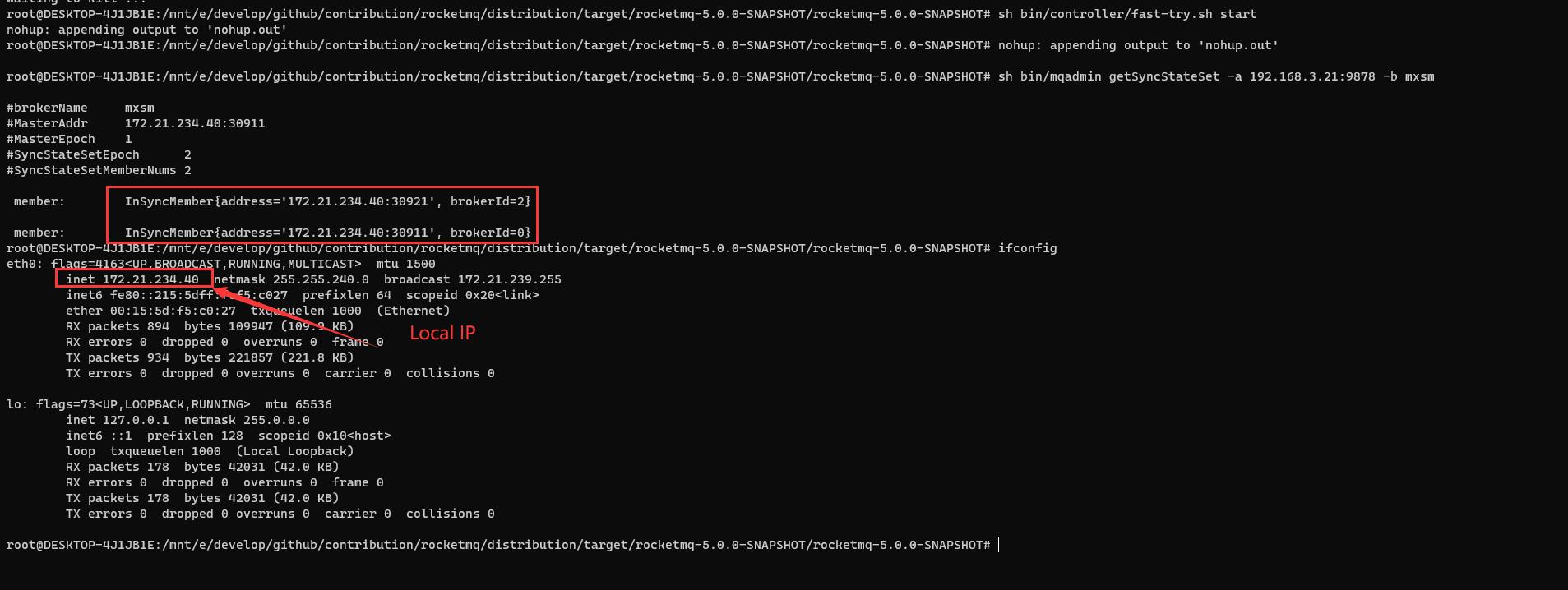 **BUG REPORT** 1. Please describe the issue you observed: Start Namesrv(Controller as plugin-IP:192.168.3.21), then register broker:  ```shell sh bin/mqadmin getSyncStateSet -a 192.168.3.21:9878 -b mxsm ``` the result is ok. then shutdown broker. and change broker deployed host ip  ```shell sh bin/mqadmin getSyncStateSet -a 192.168.3.21:9878 -b mxsm ```  The result does not correspond to the reality - What is expected to see? - What did you see instead? 2. Please tell us about your environment: environment: develop branch 3. Other information (e.g. detailed explanation, logs, related issues, suggestions on how to fix, etc): -- This is an automated message from the Apache Git Service. To respond to the message, please log on to GitHub and use the URL above to go to the specific comment. To unsubscribe, e-mail: [email protected] For queries about this service, please contact Infrastructure at: [email protected]