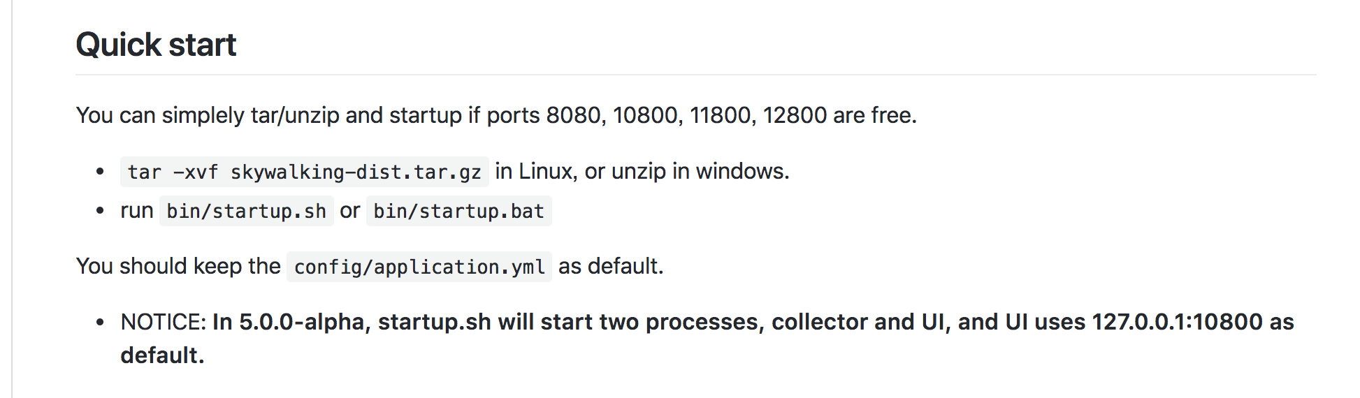 Sidneyxt commented on issue #962: localhost:10800 404 error URL: https://github.com/apache/incubator-skywalking/issues/962#issuecomment-374143222  运行了skywalking-web 之后才能访问 localhost:8080 感觉文档中好像没有提到这个. 或许是写在别处,我没有注意到吧.