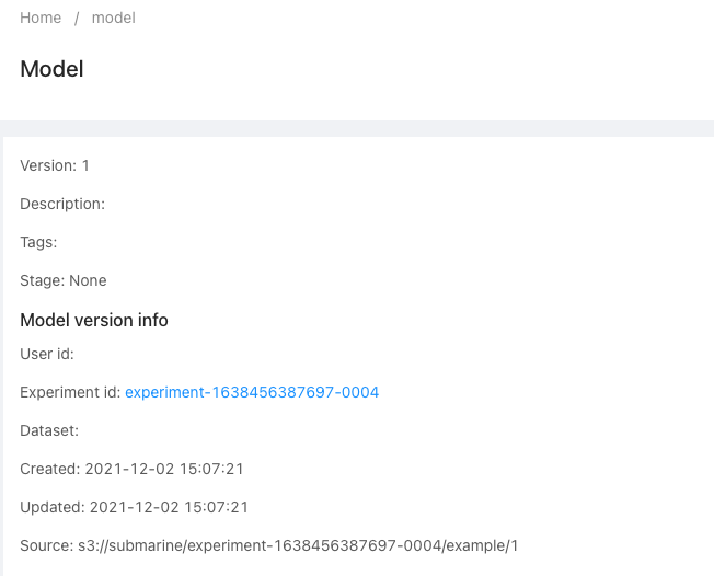 9fb45e04 [Ray02250418] SUBMARINE-1098. Add model version page Experiment id